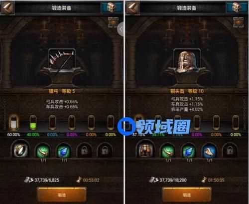 通过一段时间的收集,大家手里肯定有各种紫色材料,其中有部分紫色材料是其余属性(相对于部队加成属性)的。这时候我们可以使用2个其余属性的紫色材料,来锻造出任意一种其余属性的1级紫色装备。后面的锻造将会以该装备原料。