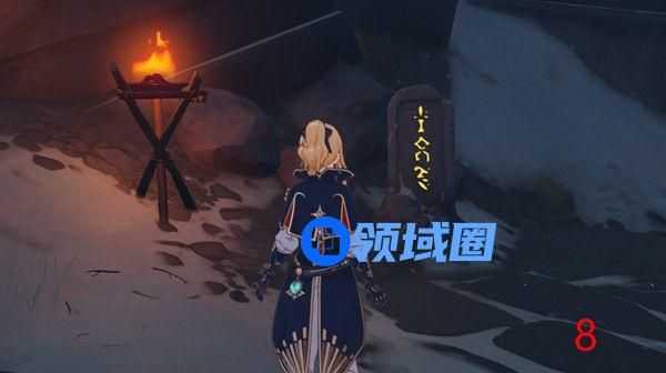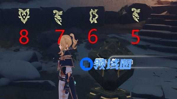 首先,这个洞窟的位置位于龙脊雪山这唯一一个七天神像的后左斜下方。其中,映入眼帘的便是一排符号,自右向左依次标记为1-8号。