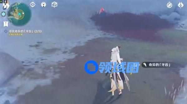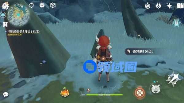 参考上图当中的任务标记的位置就能够寻找到奇异的牙齿了。(还有一处没有标出,在雪山的右下角)