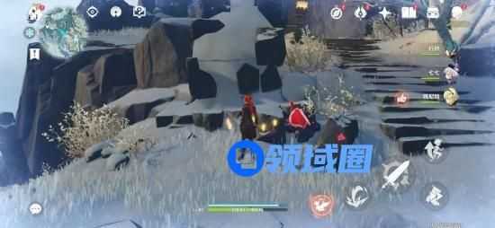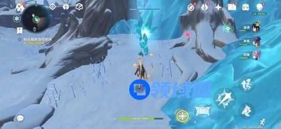 玩家需要在地图周围找到红色的矿石,获得深赤之石后角色的身上就会有上图的环绕效果,此时的攻击就可以融化掉上面那种特殊的冰块,从而开启龙脊雪山的七天神像了。