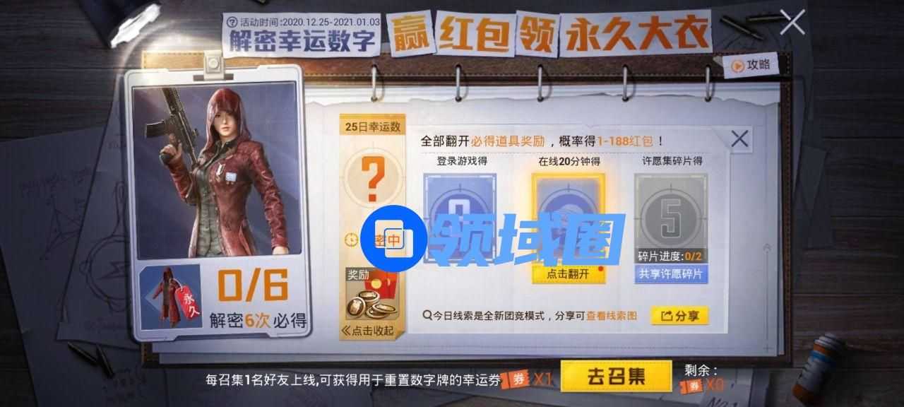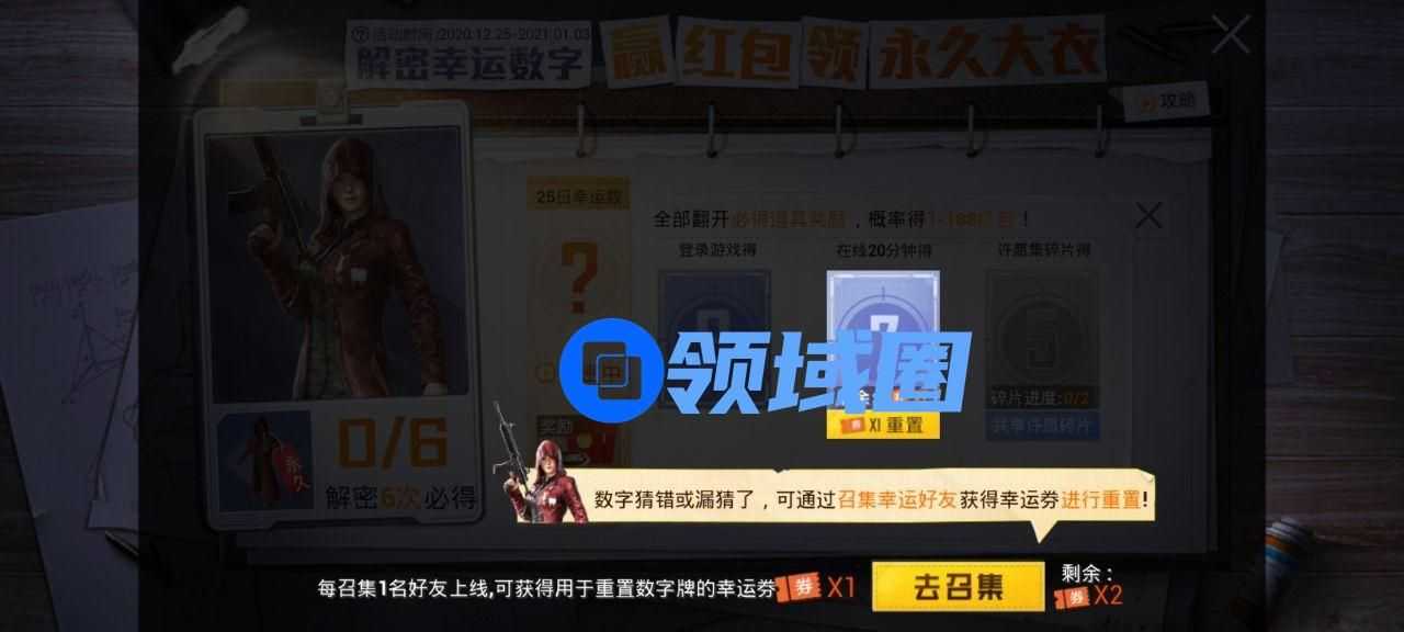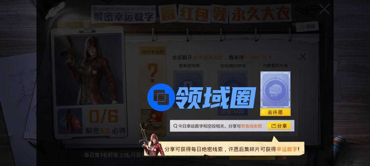 5、每日24点公布当天正确的幸运数字,解密成功的玩家可累计解密进度,累积成功解密6次可领取永久大衣。