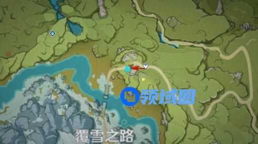 根据乔尔给出的信息,我们首先来到覆雪之路,前进路线如图所示。已经解锁了七天神像的旅行者可以直接传送到七天神像往下飞,营地就在神像下方,追踪目标会有很明显的黄色光柱,非常好找。