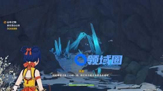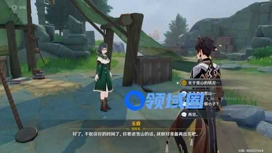 在营地和玉霞对话,询问雪山的情况,她会提到一种奇怪的冰堵住了道路,随后我们前往调查。