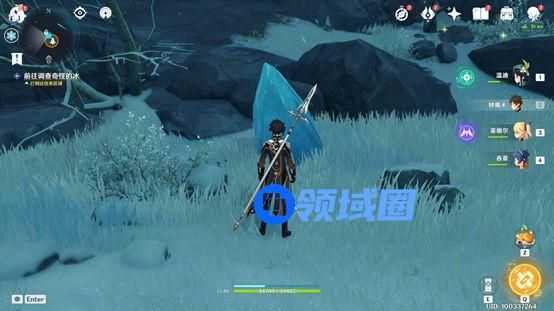 接近坚冰时会发现被一层屏障阻挡,完成冰湖中央的挑战任务后屏障解除。