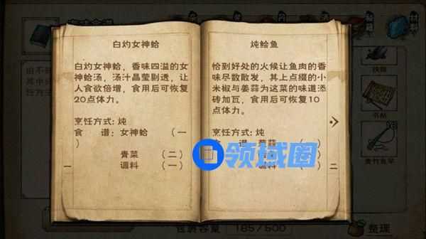 白灼女神蛤,香味四溢的女神蛤汤,汤汁晶莹剔透,让人食欲倍增,食用后可恢复20点体力。