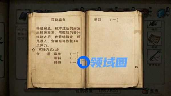 蒜烧扁鱼,煎炸过后的扁鱼肉鲜美异常,用微甜的酱汁红烧之后,色香味皆备,颇是诱人,食用后可恢复14点体力。