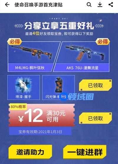 比如应用宝当中就有一个首充津贴的活动,可以通过分享邀请好友来领取得到一张满30元减12元的优惠券。