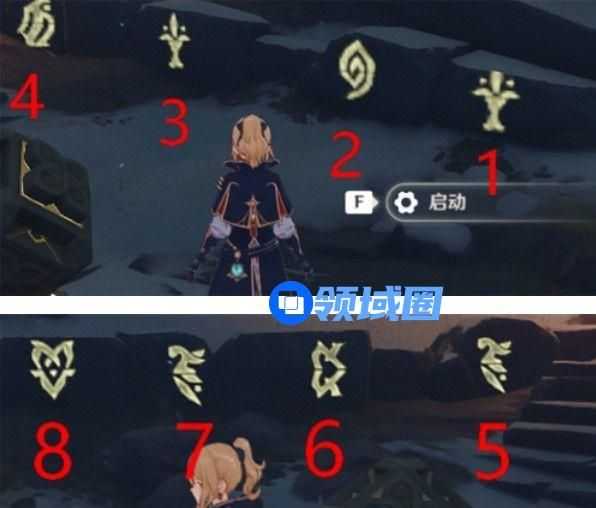首先来到龙脊雪山七天神像后左斜下方,根据发光的符号排查自己未收集的石碑,自右向左依次标记为1-8号。
