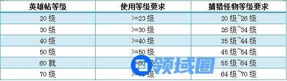 英雄帖有等级区分,英雄帖等级越高完成后获得经验值也越多,目前游戏中分为20级、30级、40级、50级、60级、70级这6档等级区分。不同等级的经验帖,对捕猎怪物的等级也不尽相同。