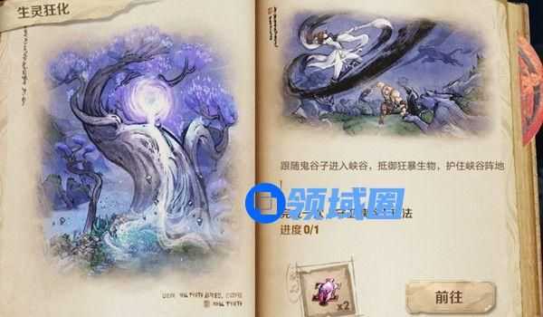 之后便会开启第二项任务生灵狂化,任务描述为跟随鬼谷子进入峡谷,抵御狂暴生物,护住峡谷阵地。