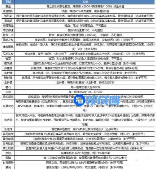 王者荣耀守卫峡谷天赋表(天赋名+天赋效果)