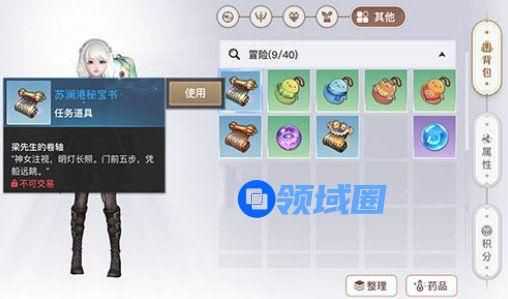 前提介绍,如果你已经激活任务的就不用看。需要玩家打开背包,然后点击其他,选择冒险,可以打开这个苏澜港秘宝书。