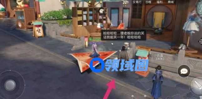 在商业街这里,然后可以看到这里有个狸成贝,旁边还站着一个男子,一直在这里哈哈大笑,不过他并没有名字。