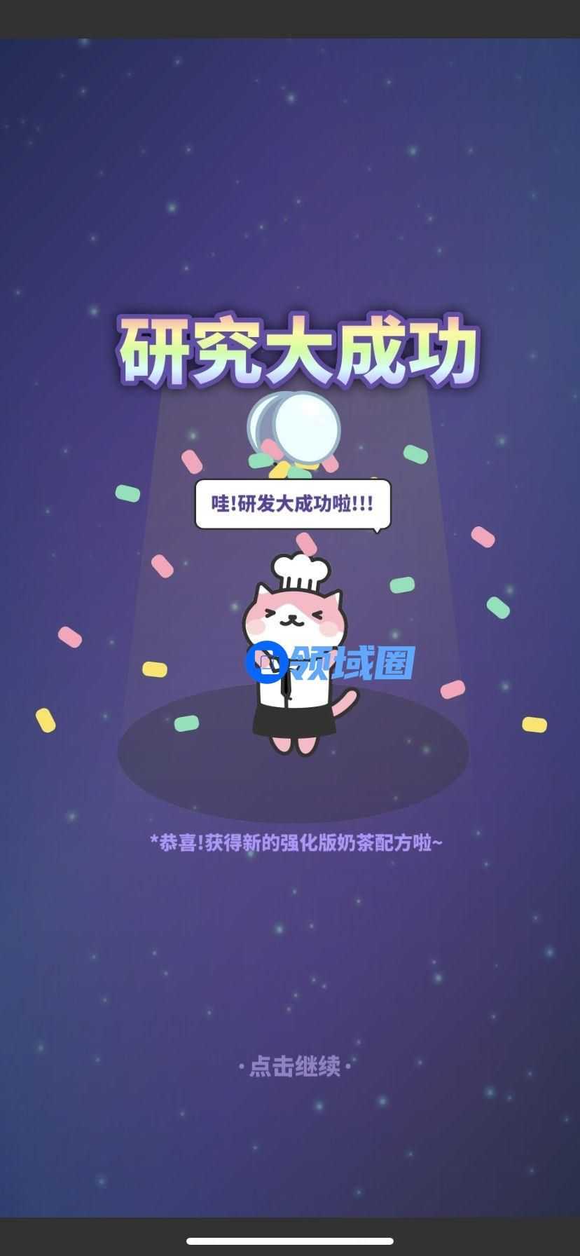 分为【研究成功】与【研究大成功】,若研究失败会产出数值极低的黑暗系列奶茶。研究大成功可以产出【强化版奶茶配方】,其各方面数值比研究成功产出的【奶茶配方】都要高。员工提供的研究能力、消耗行动点都只会提高研究的成功率,与是否达成研究大成功无关,研究大成功只能不断重复制作配方赌概率。
