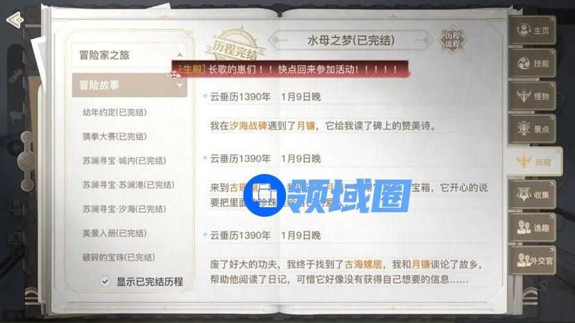 还是老办法,如果游过去找不到准确位置就打开相机,会出现红色或者绿色的标记,直接游过去,变成绿色之后拍照,再接着靠近就会自动进入剧情,和月镰对话,左边任务栏出现任务时候跟着点就行了