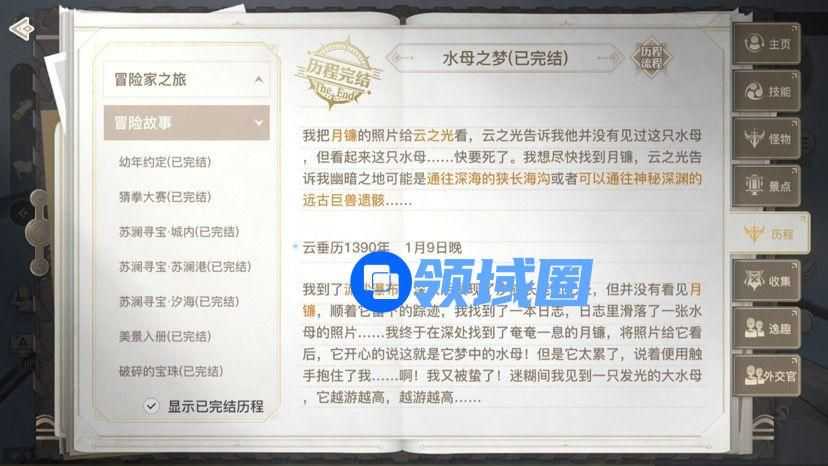 7、拍照完事之后回去岛上找云之光,他告诉你水母要死了。