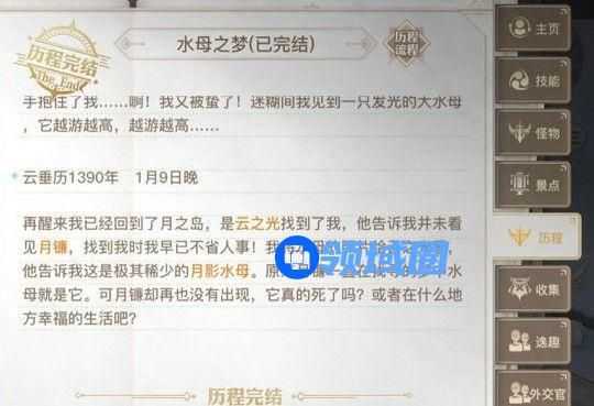 9、跟着任务走就行了,找到之后你会发现搞了大半天小水母就死了,回去海岛对话就完结了。