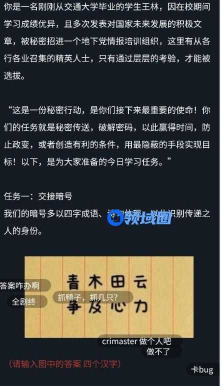 你是一名刚刚从交通大学毕业的学生王林,因在校期间学习成绩优异,且多次发表对国家未来发展的积极文章,被秘密招进一个地下党情报培训组织,这里有从各行各业召集的精英人士,只有通过层层的考验,才能被选拔。“这是一份秘密行动,是你们接下来最重要的使命!你们的任务就是秘密传送,破解密码,以此赢得时间,防止政变,或者创造有利的条件,用最隐蔽的手段实现目标!以下,是为大家准备的今日学习任务。