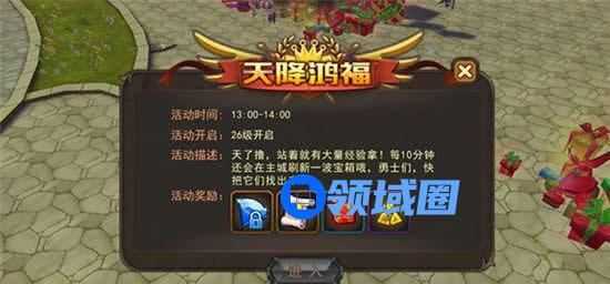 每天的13:00—14:00期间,勇士们只需在伊甸王城内,就可以通过开启宝箱,来获得钻石,获得的钻石多少完全是RP决定,勇士们要记得每天准时参加哟。