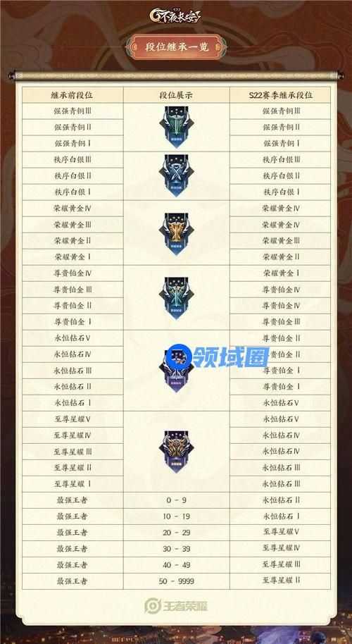 王者荣耀s22段位继承表。新赛季马上就要到了,距离正式更新的日子也不会太远,而在赛季更新后骂自己会保留到什么段位也成为了大家作比较关注的问题,了解清楚后,自己才能做好心理准备,迎接新赛季的冲段之旅。下面就为大家带来王者荣耀s22新赛季段位继承图。