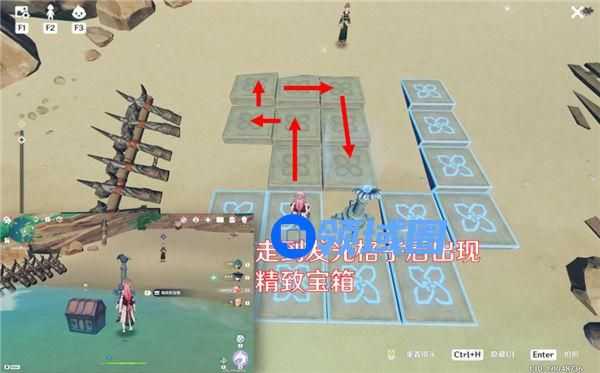 再次沿着下图路线走到发光格子处即可完成解谜,获得精致宝箱一个。