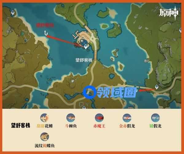 望舒客栈的鱼有:甜甜花鱂、斗棘鱼、赤魔王、金赤假龙、锖假龙。