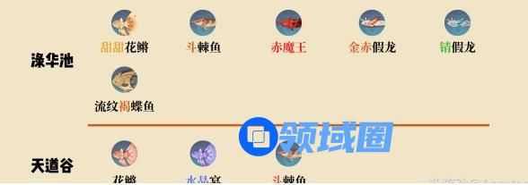 天遒谷的鱼有:花鱂、水晶宴、斗棘鱼。