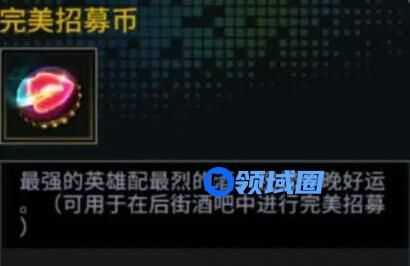 1、普通招募币,高级招募币,完美招募币:可在后街酒吧进行英雄招募,不同招募币可召唤的英雄品质也不同。