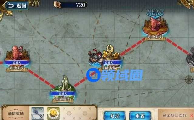 在同一阶的冒险中,如果出现英雄阵亡,则需要消耗复活次数进行复活,或通关BOSS关后自动复活。