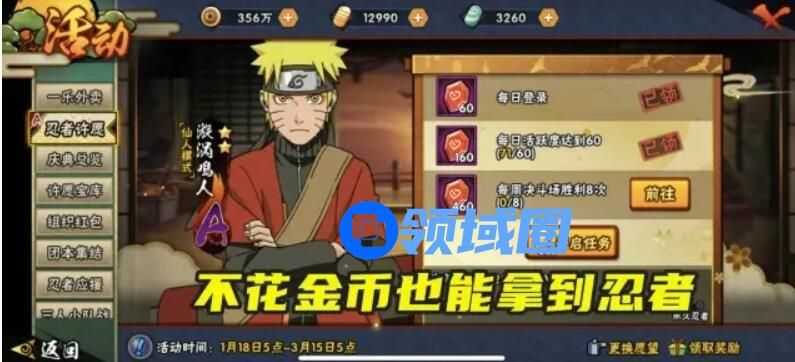 接下来再说一些这个活动的细节,首先就是你选择忍者以后就会呈现出每日任务和每周任务,这个并不是关键,关键是下面还有一个200金币开启任务的选项。第一次上线这个活动的时候就有不少玩家以为不用金币没办法拿到整卡,所以就直接消耗金币开启了,但其实,只要你仔细看活动的说明和计算活动的周期,基本上就能够明白这个金币完全不需要花。