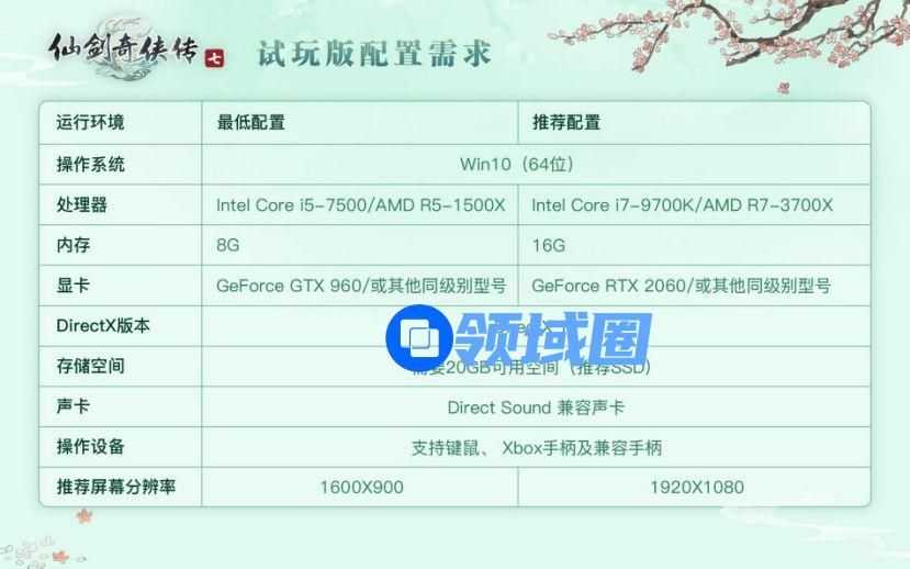 仙剑奇侠传7试玩版配置要求高吗?配置的要求一致是很多人非常关注的问题,如果配置不够,那么在体验过程中自己所获到的游戏体验也绝对不会太好,所以对于各项配置的最低要求一定要达到。下面就为大家带来仙剑奇侠传7试玩版最低配置要求介绍。