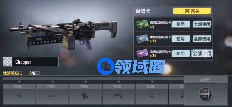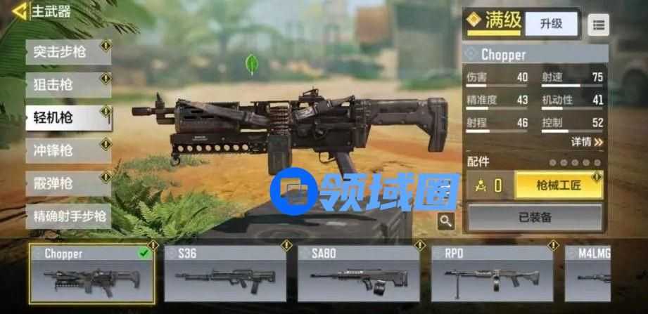 3、Chopper的面板数据本身在射速、机动性占优势,精准度和射程是需要通过配件弥补的;