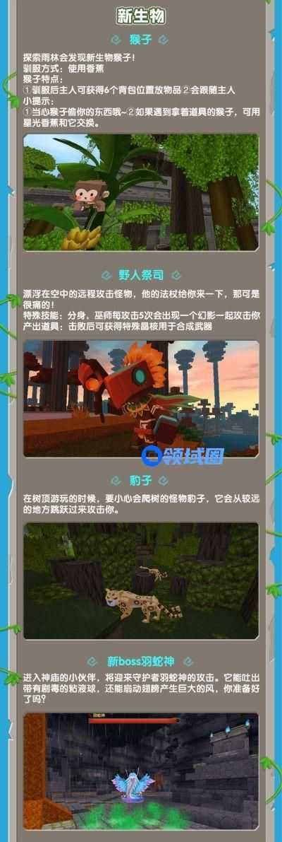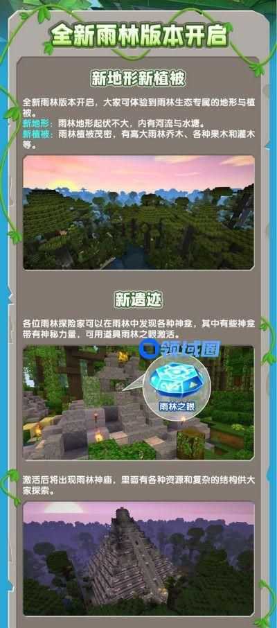 全新雨林版本开启,大家可体验到雨林生态专属的地形与植被