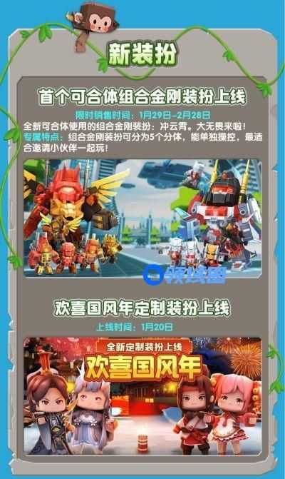 专属特点:组合金刚装扮可分为5个分体,能单独操控,最适合邀请小伙伴一起玩!