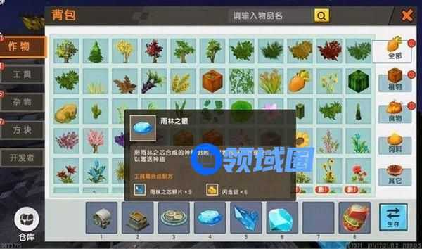 在雨林的树木里面,有雨林之芯乔木,在得到了数量足够的雨林之芯之后,玩家就可以合成雨林之芯碎片了。在拥有了足够多的碎片之后,就可以合成雨林之眼,补全残破的神像,开启大神庙了。
