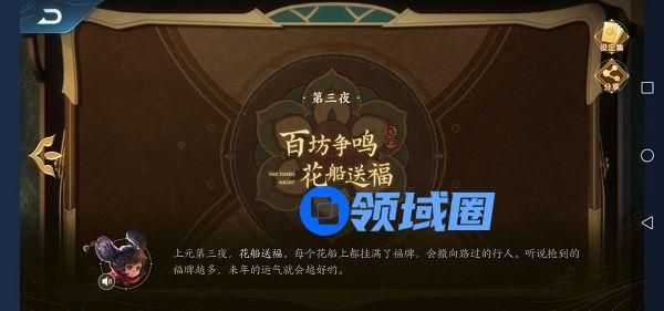 第一个是上元夺魁任务,玩家可以前往长乐坊按照任务提示进行完成,随后即可领取到对应的奖励了;