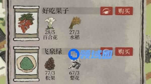 好吃果子需要玩家使用5个百合花和3个水稻来进行兑换。