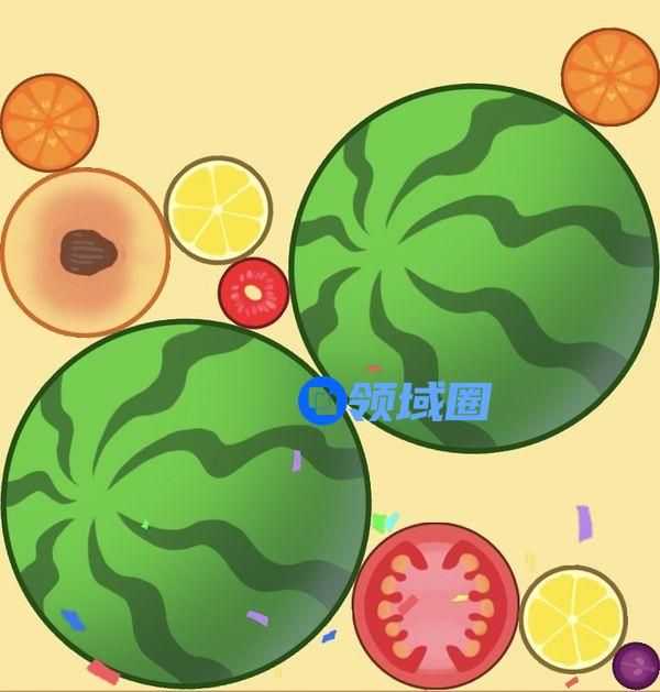 只要点击屏幕的某个位置,两个一样的水果只要相互碰撞,就会合成更高一级的水果,一直到最大的西瓜。离谱的堆叠引擎,花花绿绿大小不一还谜之看不懂的水果,随即散落可能最后拼出一盘水果拼盘的场面