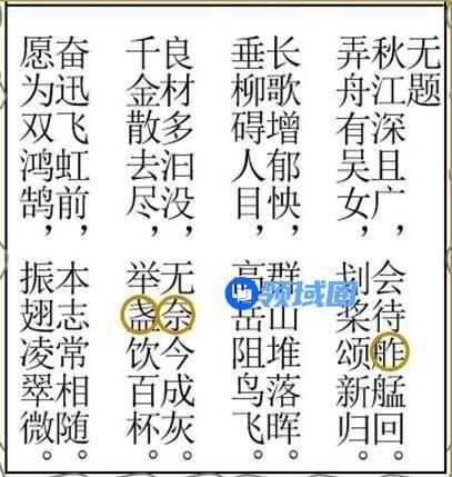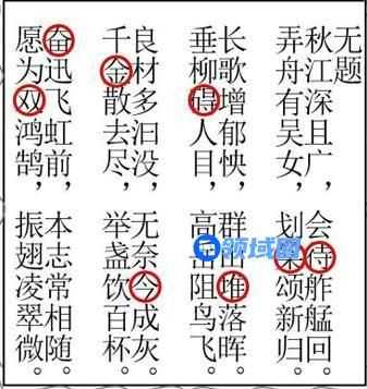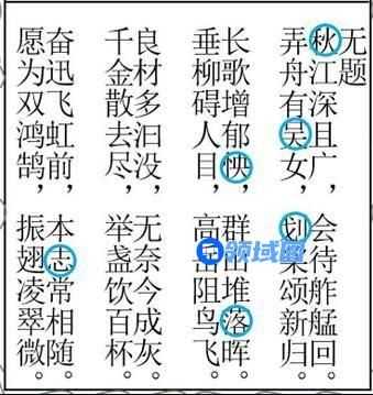 英=落+快,吉=志+吴,利=秋+划。(在此题给出的诗中,汉字拆解组合只有唯一解。)