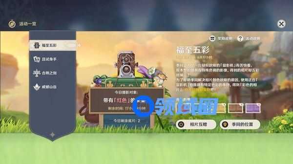 原神中1.3版本的最新活动福至五彩已经随着更新完成而开启了,这个活动需要玩家寻找指定的颜色的目标进行拍照获取不同颜色的相片,之后即可利用相片来进行福至宝匣的奖励兑换。