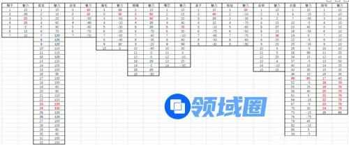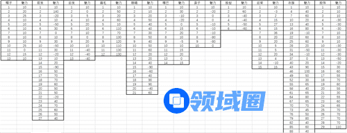 假定每个部位的一号部件魅力都为10,然后对应魅力值的增增减减算出来的