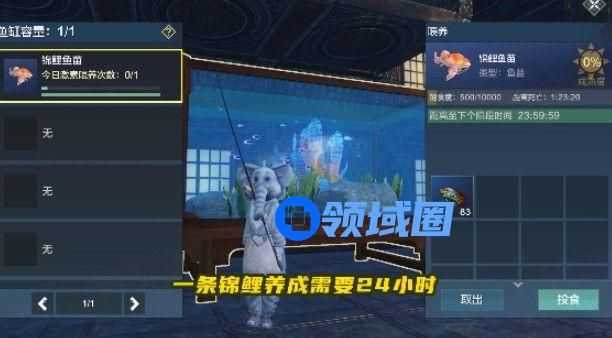 锦鲤鱼苗养至成熟需要24小时,取出成熟且存活状态的锦鲤将获得锦鲤蛋礼包,打开后必得3张锦鲤兑换券。