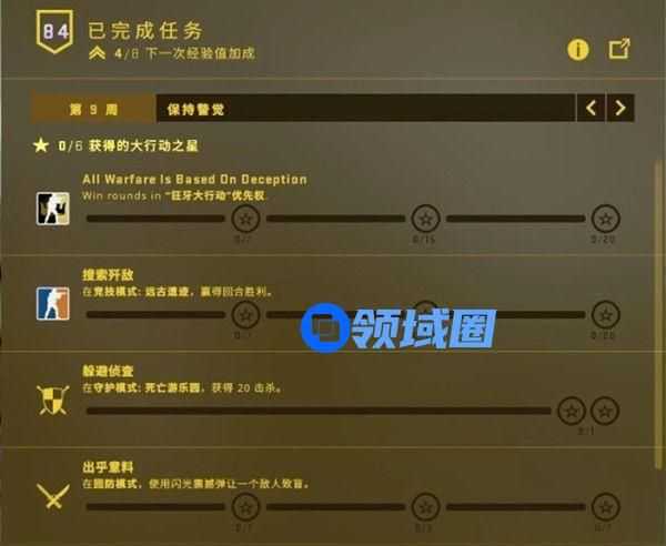 “躲避侦查”为守护模式,要求玩家在死亡乐园中用AUG获得20爆头击杀即可完成任务获得2颗大行动之星。
