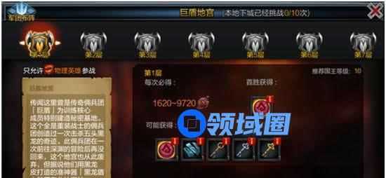 点击奇境界面的巨盾地宫、巫妖密窟、精灵深谷三大地下城,可以查看到该地下城的开放时间以及参战要求。