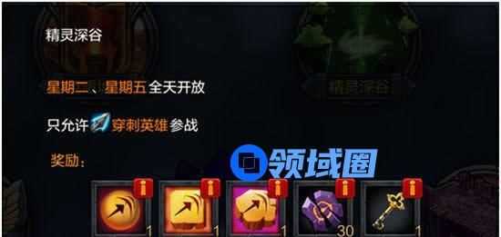 例如精灵深谷,只会在星期二、星期五全天开放;并且只允许穿刺英雄参战。