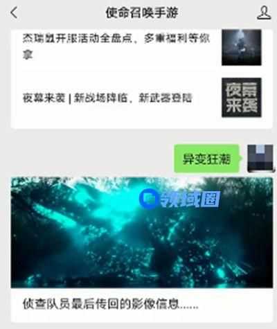 得到这个口令码之后,玩家们前往使命召唤手游微信公众号输入异变狂潮即可看到一段很短的视频。