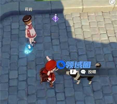 狗食盆就在旁边,互动选投喂后,消耗1个禽肉完成任务。