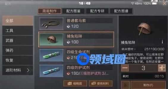 首先在配方里制作捕兔陷阱,然后在兔子洞口摆放。