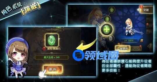 3、镶嵌:御主可以通过冒险以及游戏内商店或者其他系统获得符石,角色通过镶嵌符石即可提升战力,镶嵌满后即可进行角色突破,提升从者品阶,从者品质的提升将会解锁从者新的技能栏。
