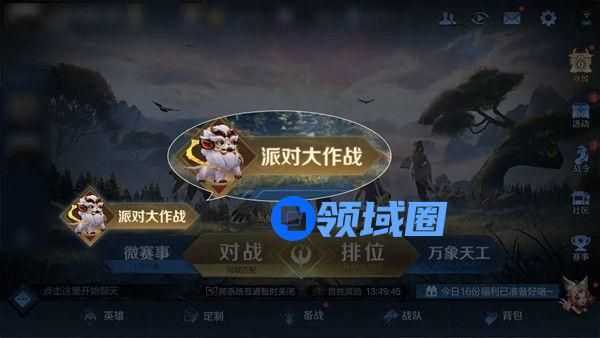 派对大作战,即整合、优化已有活动玩法,新增趣味小玩法,在排位之余,丰富玩家的对决体验!此模式由10个左右的趣味玩法组成,每次开局将随机3个玩法,玩的就是心跳!